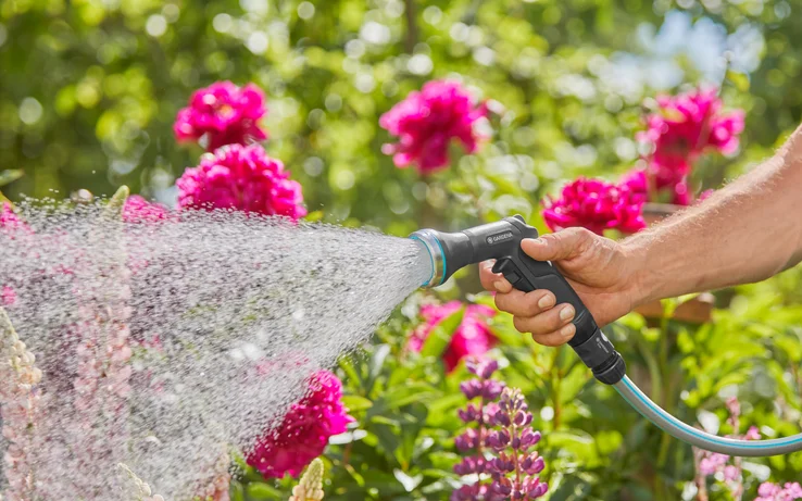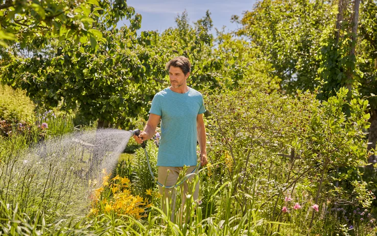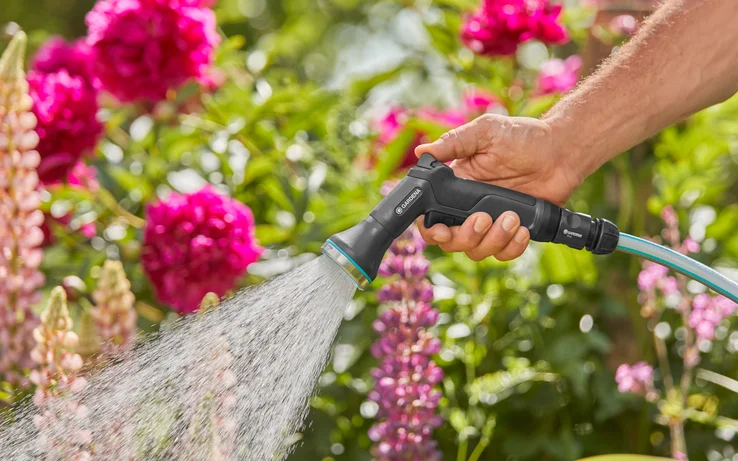 The GARDENA EcoLine Watering Sprayer is ideal for watering your potted plants and flower beds thanks to its gentle spray. The EcoLine Watering Sprayer's plastic components are made from at least 65 percent recycled household waste. The corrosion-resistant metal, consisting of more than 45 percent recycled material, ensures durability and a long product lifespan. This makes it a sustainable solution for watering your garden. Not only comfortable and easy to use, the Watering Sprayer also shines with its timeless and elegant design. The EcoLine Watering Sprayer's handle is ergonomically shaped, providing comfort and the ease of use when tending your garden. Your hand is given a break while watering with the help of the simple locking function. The amount of water can be smoothly adjusted with one hand. This makes watering your plants even easier and they get exactly the right amount of water they need, without wasting a drop. The EcoLine Watering Sprayer is UV and frost resistant, it does not have to be put away in bad weather or cold, but can be left outside all year round. The sprayer is made in Germany and is backed by a five-year manufacturer's warranty from GARDENA. A natural choice for passionate gardeners. ReTh!nk - The new EcoLine range. Sustainably made. Aesthetically designed. Durably built.