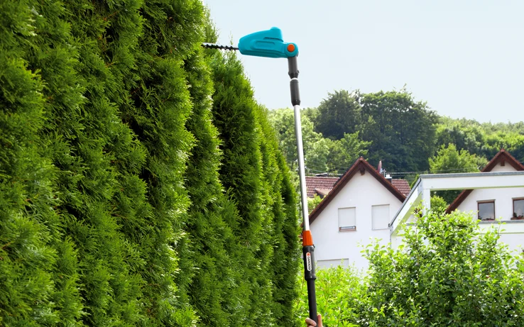 Le siepi alte proteggono la privacy, ma quando hanno bisogno di essere tagliate, presto la privacy non è più una priorità. Il Tagliasiepi telescopico a batteria THS 42/18V P4A GARDENA può facilmente gestire anche siepi alte tre metri. Tagliare su scale traballanti appartiene al passato, potete sempre stare al sicuro con i piedi ben piantati a terra e non dovrete più preoccuparvi dei cavi elettrici.