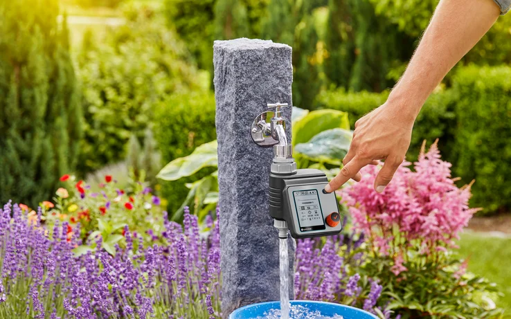 Il Computer per irrigazione Master GARDENA permette di controllare facilmente l’irrigazione in modo estremamente flessibile ed automatico. La centralina per irrigazione permette di impostare fino a sei diversi programmi indipendenti. La gestione è estremamente semplice, così come il montaggio. Master funziona a batteria, si collega al rubinetto ed è subito pronto per essere utilizzato. Il sistema di controllo offre una facile regolazione ruotando la manopola e confermando con il pulsante. Un display LCD facilmente leggibile e ricco di elementi grafici, mostra tutte le impostazioni a colpo d'occhio, compresi i programmi attualmente attivi. Il Menu del computer per irrigazione Master è disponibile in 10 lingue selezionabili. Il pannello di controllo è resistente alle intemperie e può essere rimosso. È facile adattare in blocco la durata dei programmi o interrompere l'irrigazione in caso di maltempo. Inoltre può essere utilizzato insieme a un sensore di umidità del terreno GARDENA per ottimizzare l’irrigazione in caso di pioggia o maltempo. L'unità è ideale per il controllo in automatico con il distributore d'acqua a sei vie GARDENA.