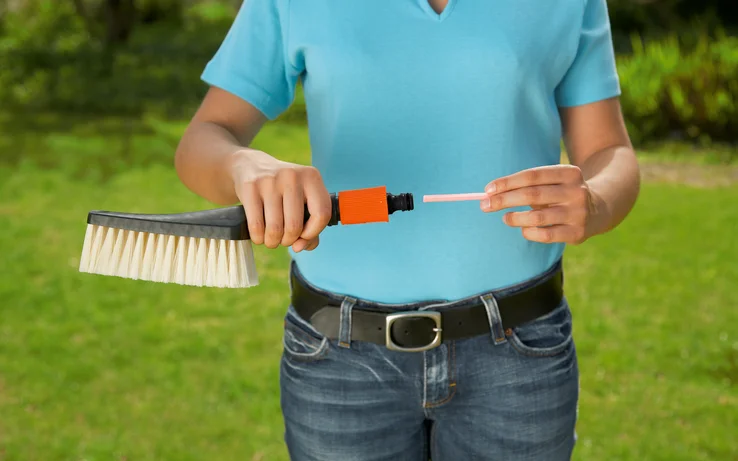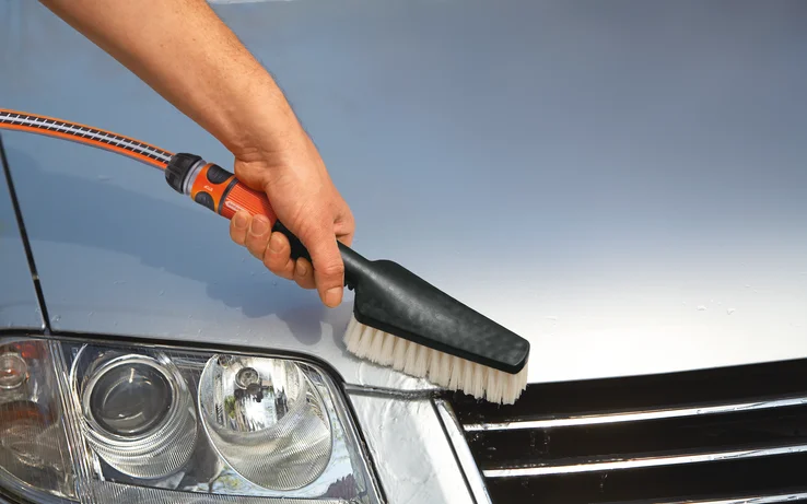 Mažas GARDENA rankinis plovimo šepetys, prie kurio per "Original GARDENA System" galima prijungti vandenį, nesunkiai nuvalysite lengvai susibraižančius, pvz., sodo baldų, garažo durų, automobilių ir pan., paviršius. Dėl plokščios ir siauros šepečio galvutės formos nesunkiai pasieksite visus siaurus tarpus ir užkampius. Vandens srauto greitis tolygiai reguliuojamas ir fiksuojamas. Tokiu būdu vandens srovę galite reguliuoti pagal poreikį. Norėdami padidinti valymo veiksmingumą, naudokite GARDENA vaškines šampūno lazdeles. Ypač švelniai galima nuvalyti dažytus ir plastikinius paviršius. Negalima naudoti kartus su "Original Gardena System" pratekančiomis rankenomis.