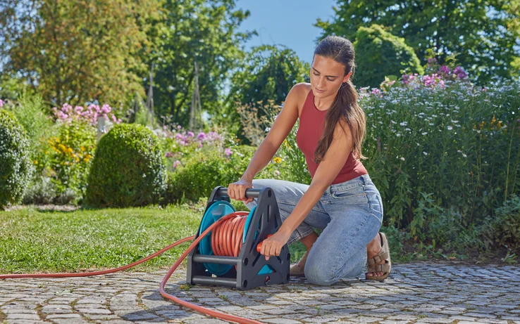 Naudodami GARDENA bazinį žarnų ritės komplektą (20 m), turite viską, ko reikia, kad galėtumėte efektyviai laistyti sodą. Paruoštą naudoti rinkinį sudaro 20 m ilgio bazinė žarna, kurios skersmuo 1/2" (13 mm), čiaupo jungtis su adapteriu, tinkančiu vandens čiaupams su srėgiais 21 mm (G 1/2") ir 26,5 mm  (G 3/4"). Dvi bazinės žarnos jungtys, jungtis su vandens stabdikliu ir bazinis antgalis. Dėl integruotos rankenos rinkinį galite lengvai nešiotis. Didelė švaistiklio rankena leidžia patogiai atsukti ritę. Dėka kompaktiškos konstrukcijos rinkinį galite sandėliuoti taupydami vietą, mėgaudamiesi lengvu transportavimu ir tvirtu stovu. Purkštuvas turi reguliuojamą purškimo srovę, nuo smulkios dulksnos iki stiprios srovės, tad puikiai tinka laistymo ir valymo darbams. Vandens stabdiklis automatiškai sustabdo vandens tekėjimą, jei antgalis yra nuimamas. Vanduo vėl paleidžiamas tik prijungus antgalį. Čiaupo antgalis su apsauga nuo purslų užtikrina darbą be apsitaškymo prie čiaupo, specialios formos žarnos sujungimo detalių veržlė užtikrina patikimą sukibimą su žarna. Bazinis žarnos ritės rinkinys (20 m) yra kokybiškas gaminys, pagamintas Europoje ir jam suteikiama penkerių metų GARDENA garantija, užsiregistravus internetu gardena.com/registration per tris mėnesius nuo pirkimo. Laistymas, kuris visada paruoštas darbui! Lengvas, kompaktiškas ir patogus transportuoti.