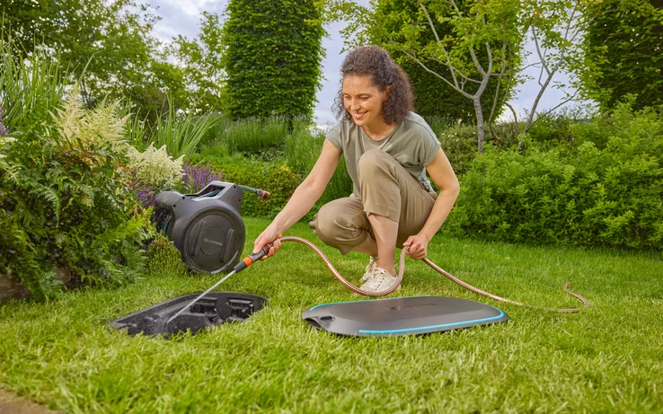 Ieškote diskretiško žarnos saugojimo sprendimo? Galite nebeiškoti! GARDENA požeminė žarnos ritė sukurta taip, kad suteiktų lengvą prieigą prie jūsų lauko žarnos, nesumažinant sodo estetikos. Įrengta po žeme, ji padeda išlaikyti sodą tvarkingą ir užtikrina, kad jūsų žarna visada būtų paruošta laistymui.