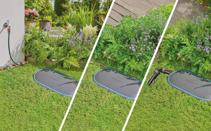 Galimybė prijungti trimis paprastais būdais leidžia rasti tinkamą sprendimą jūsų sodui. Žarnos ritę galima montuoti tiesiai prie čiaupo su 1,5 m prijungimo žarna, atvirame plote su lauko žarna arba su GARDENA požeminiu vamzdynu. Žarnos modulis lengvai nuimamas nuo korpuso, kad būtų galima tinkamai išvalyti arba saugoti žiemą, jei to norite.