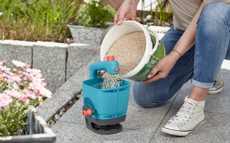 GARDENA rankinis barstytuvas "M" puikiai pritaikytas trąšoms arba techninei druskai barstyti mažesniuose plotuose. Barstomos medžiagos kiekis nustatomas tiesiogiai reguliuojant svirtelę ant ergonomiškos laikymo rankenos. Rankinis barstytuvas valdomas sukant rankenėnę. Laisvai besisukantis barstymo diskas užtikrina optimalų veikimą ir tolygų barstomos medžiagos paskirstymą, jos neišverčiant ir išvengiant užsikimšimo. Barstytuvo korpusas pagamintas iš tvirto plastiko, todėl yra ypač patvarus.