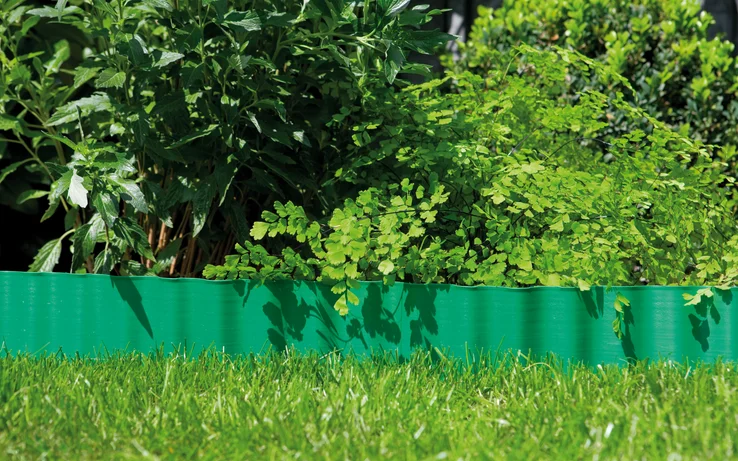 GARDENA Zāliena apmales ir izgatavotas no augstas kvalitātes plastmasas. Pateicoties norobežojošajām apmalēm, zāle neaizaugs un saknes neizplatīsies. Apmales rullis ir 9 metrus garš un 15 cm augsts.