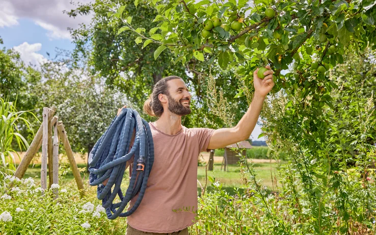 GARDENA tekstila šļūtene Liano™ Xtreme 19 mm (3/4"), 20 m ir ideāla ūdens šļūtene ilgstošai, smagai un sarežģītai vidēja lieluma dārzu apūdeņošanai. Pateicoties 19 mm (3/4") diametram, šļūtene piedāvā lielu ūdens plūsmu un ļauj ātri transportēt daudz ūdens. Tāpēc tā ir ļoti piemērota lielu laistītāju vai sūkņu ūdens piegādei. Papildus izturīgajam Liano™ Xtreme, lietošanai gatavajam komplektam ietilpst arī iepriekš samontētās Oriģinālās GARDENA sistēmas daļas Liano™ šļūtenes savienotājs un Liano™ savienojums ar stop, lai varētu ātri sākt lietot Liano™ Xtreme. Ļoti elastīgā PVC iekšējā šļūtene ir pārklāta ar inovatīvu ārējo apvalku, kas izgatavots no īpaši izturīga tekstila auduma. Šī kombinācija nodrošina, ka Liano™ Xtreme pārsteidz ar izcilu veiktspēju, elastību un izturību. Izturīgā un netīrumus atgrūdošā dārza šļūtene nevar saliekties un tāpēc to var viegli vadīt ap priekšmetiem. Izturīgajam tekstila audumam nelīdzens reljefs, piemēram, bruģakmeņi, rožu ērkšķi vai manevrēšana gar mājas sienām, nav izaicinājums. Šļūtene ir elastīga, to ir patīkami turēt un tai ir mazs svars. Tā ir līdz pat 50% vieglāka nekā parastās PVC šļūtenes. Tas palielina komfortu, īpaši ilgāku lastīšanas sesiju laikā. Tekstila šļūtenes pārraušanas spiediens ir 35 bāri. Tā ir arī izturīga pret laikapstākļiem, pateicoties UV un sala izturībai. Kaitīgās vielas nesaturošais Liano™ Xtreme nesatur ftalātus (<0,1%), kā arī kadmiju, svinu un bāriju (<0,1%). Vienkārši piekariet tekstila šļūteni uz kompaktā sienas šļūtenes kronšteina, lai nodrošinātu kārtīgu un vietu taupošu uzglabāšanu. Sienas šļūtenes kronšteins ir arī UV un sala izturīgs un piedāvā glabāšanas iespēju jūsu oriģinālās GARDENA sistēmas laistīšanas piederumiem, piemēram, smidzinātājiem un sprauslām. Pēc reģistrācijas vietnē gardena.com/registration 3 mēnešu laikā pēc iegādes, GARDENA piešķir jums ilgu ražotāja garantiju 30 gadu garumā augstas kvalitātes tekstila šļūtenei Liano™ Xtreme, kas ražota Eiropā. Radītas ekstrēmiem apstākļiem. Paredzētas ikdienai. Liano™ tekstila šļūtenes.