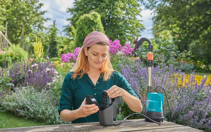 Vai vēlaties izmantot sūkni kaut kur, kur nav elektrības? Izmantojot GARDENA akumulatora tīrā ūdens iegremdējamo sūkni 2000/2 18V P4A, jūs varat sūknēt ūdeni no punkta A uz punktu B neatkarīgi no atrašanās vietas - dārzā, laivā vai jebkur citur citur brīvā dabā.