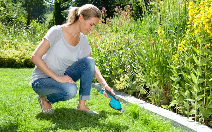 De lichte Grasschaar met accu, voor het nauwkeurig knippen van gazonranden