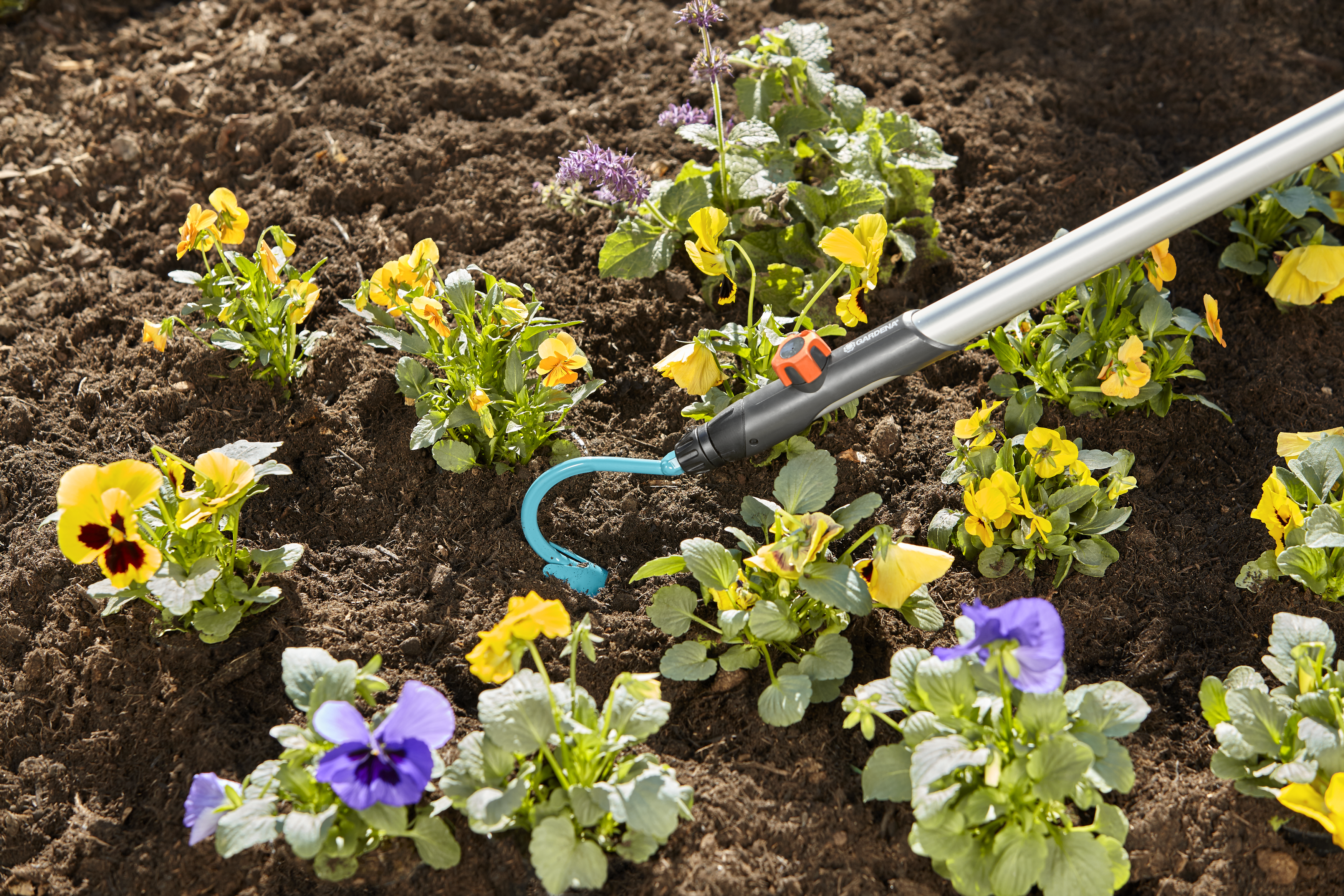 Met de GARDENA combisystem Cultivator en zijn scherpe punten breek je makkelijk verkorste aarde op. Dankzij de makkelijk verwisselbare accessoires is het GARDENA combisystem flexibel te gebruiken. De Cultivator kan met alle stelen van het GARDENA combisystem gecombineerd worden en je bevestigt hem door hem op de steel te schuiven en vast te schroeven. GARDENA raadt een steel met een lengte van 130 cm aan, maar de keuze van de steel hangt ook af van de werkomstandigheden en je lichaamslengte. De betrouwbare aansluiting tussen de Cultivator en de steel zorgt ervoor dat je altijd comfortabel kan werken. Om voorzichtig met planten om te springen in zeer nauwe rijen is het gereedschap erg compact en heeft het een werkbreedte van slechts 3,6 cm. De duurzame en corrosiebestendige Cultivator is gemaakt van hoogwaardig staal en voorzien van een Duroplast-coating. Je kan de Cultivator ruimtebesparend opbergen met de combisystem gereedschaphouder flex (art.nr. 3505-20). De GARDENA combisystem Cultivator heeft een garantie van 25 jaar na registratie op gardena.com/registration binnen 3 maanden na aankoop. Let your tool family grow. GARDENA combisystem. Verwisselbaar. Duurzaam. Voor al je tuinwerk.