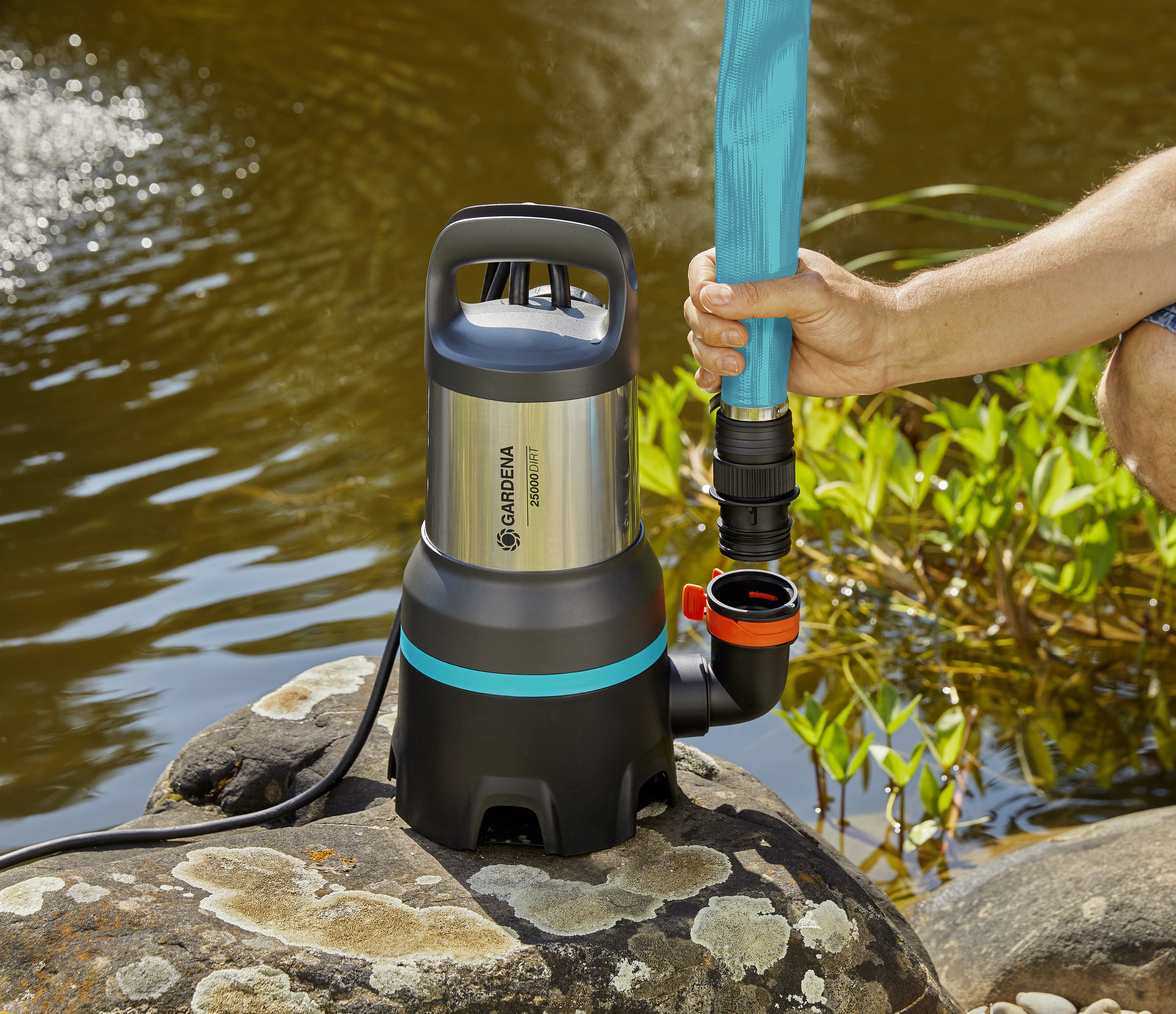 GARDENA, Europa's toonaangevende merk voor hoogwaardige, geavanceerde tuingereedschappen en accessoires, presenteert de pomp voor vuil/schoon water 19500 Aquasensor, een nieuwe generatie hoogwaardige en energiezuinige dompelpompen. Of u nu uw tuinvijver wilt leegpompen en schoonmaken, een met regenwater gevulde bouwput wilt legen of uw kelder wilt schoonmaken na een overstroming of een leidingbreuk, met deze innovatieve combinatiepomp voelt u de kracht van GARDENA pompen en pompt u schoon en vuil water simpel weg. De motor heeft een vermogen van 860 W en een indrukwekkende pompcapaciteit van 19.500 liter water per uur. Met een druk van 1,0 bar en een maximale opvoerhoogte van 10 m is deze hybride pomp bijzonder efficiënt. De vlakke aanzuigkracht in de modus voor schoon water kan schoon of licht vervuild water tot 1 mm diep verwijderen, waarna een keldervloer gemakkelijk kan worden schoongeveegd. In geval van troebel water dat vuildeeltjes met een deeltjesgrootte tot 35 mm bevat, verandert u de 2-in-1 dompelpomp eenvoudig in een vuilwaterdompelpomp door de andere gebruiksmodus te kiezen. Dit is ideaal voor het droogmaken van een volgelopen bouwput met grove vuildeeltjes in het water en voor veel andere klussen waarbij vuil water moet worden weggepompt. Het is verrassend eenvoudig om te schakelen tussen de modi voor schoon en vuil water. Vuile handen en natte schoenen behoren absoluut tot het verleden. Dankzij het intelligente, slanke ontwerp en de hoogwaardige fabricage blijft de pomp voor vuil/schoon water 19500 Aquasensor van GARDENA altijd lekvrij en houdt uw handen en kleding altijd schoon en droog. Het keramische assysteem met lange levensduur heeft een drievoudige afdichting voor extra duurzaamheid. Een ander innovatief hoogtepunt van de pomp is het led-Aquasensor-systeem, dat op intelligente wijze het vereiste waterniveau handhaaft. De Aquasensor zorgt ervoor dat de combinatiepomp in smalle sleuven kan werken en biedt nauwkeurig instelbare in- en uitschakelhoogten. Het waterpeil wordt gemeten zonder direct contact met de sensor en wordt weergegeven met handige leds op het apparaat. Bovendien biedt de Aquasensor een intuïtieve aanraakbediening, bescherming tegen drooglopen en verstopping en handige tijdklokfuncties. Het nieuwe systeem is nog handiger dankzij de mogelijkheid om slangen met een eenvoudige klik aan te sluiten. Slangen met een diameter van 32 mm, 38 mm en 50 mm kunnen met één klik worden aangesloten. De optionele G1 ½"-schroefdraad zorgt voor nog meer aansluitmogelijkheden. Hierdoor is deze dompelpomp voor schoon/vuil water zeer indrukwekkend, niet alleen qua uiterlijk, maar vooral qua functionaliteit. Dit maakt de pomp ideaal voor alle veeleisende huis- en tuinbezitters. U kunt vertrouwen op de 40 jaar expertise van GARDENA op het gebied van pompen voor beregening, drainage en huishoudelijk gebruik. Als extra teken van kwaliteit geven we een garantie van 5 jaar op al onze pompen. U hoeft het product alleen maar online te registreren. Voel de kracht van GARDENA pompen!