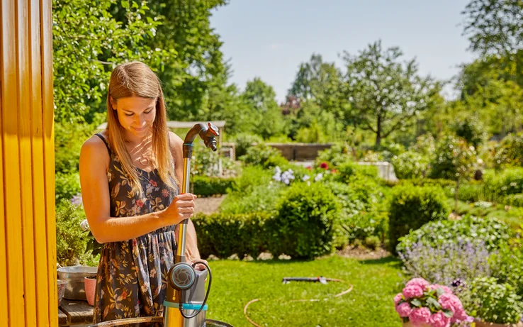 Et praktisk bærehåndtak gjør vannpumpen enkel å flytte. Registrer produktet online og få 5 års garanti. En fleksibel, plassbesparende og driftssikker regnvannspumpe for deg som vil vanne miljøvennlig.