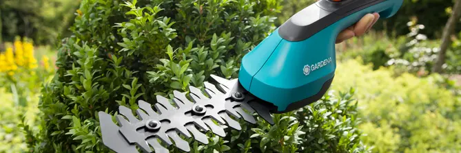 De lette GARDENA batteribusksaksene er kabelfrie og enkle å manøvrere, og er optimalt egnet til å forme hekker på en nøyaktig og enkel måte.