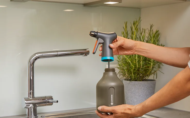 Rask vanning av planter og blomster – dette fungerer perfekt, igjen og igjen, med den 0,75 liter pumpesprøyten fra GARDENA. Pumpesprøyten er klar til bruk med det samme, og du kan bruke den både inne, på balkongen eller i hagen. Vann suges inn hver gang du trykker på håndtaket, uavhengig av vinkelen sprøyten ligger i hånden, fordi sugeslangen har en 360°-funksjon som gjør at den alltid er i vanntanken, og at det ikke suges inn luft. I kombinasjon med den robuste messingdysen av høy kvalitet får du topp ytelse i hver eneste sprut. Juster dysen enkelt og komfortabelt for å bruke enten full stråle eller tåkedusj. Beholderen er gjennomsiktig, så det er lett å se vannivået. Det ergonomiske håndtaket gjør den veldig behagelig å bruke, selv med våte fingre. Den store åpningen gjør det lett å fylle vann.