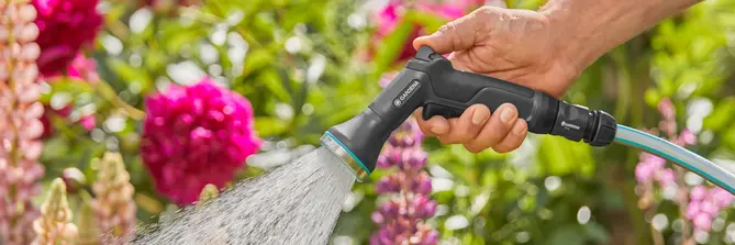 Dusjpistoler med justerbar vannstråle. Ideell for vanning av sensitive blomster og potteplanter.
