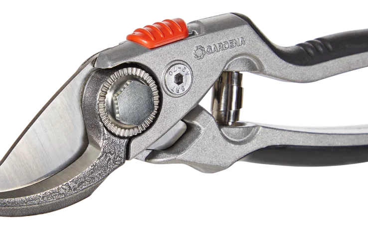 The GARDENA Aluminium Garden Secateurs B+/L with its stainless steel upper blade and forged re-sharpenable bottom blade; both replaceable, are perfect for cutting flowers, young shoots and fresh wood (up to 22mm). The extra-narrow cutting head permits particularly precise cutting. The ergonomically-shaped aluminium handles with two hand positions provide maximum comfort when cutting. The secateurs have a practical single-hand safety lock for safe storage, wire cutters and a sap groove and are backed with the GARDENA 25 year warranty.