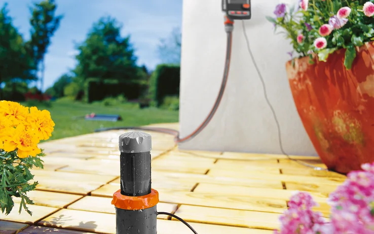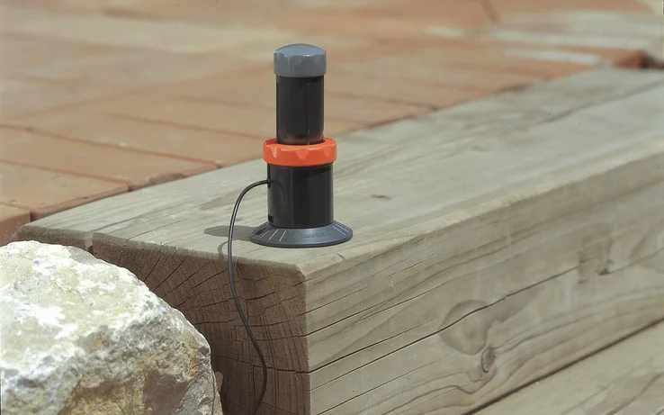 The Rain Sensor can be placed in a gravel-filled flower pot or directly on a solid surface. The length of the connection cable is 5 m.