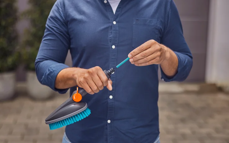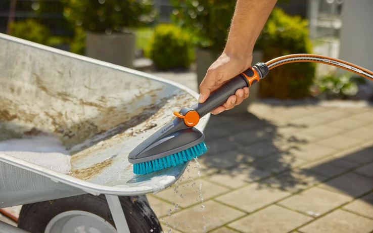 Wkłady mydlane GARDENA (art. 18852) zapewniają jeszcze dokładniejsze rezultaty czyszczenia. Wystarczy włożyć wkład mydlany do szczotki, podłączyć szczotkę do węża, a mydło zostanie automatycznie dodane do wody. Eliminuje to potrzebę pracochłonnego mieszania wody ze specjalnymi środkami czyszczącymi, a mieszanka wody i mydła jest nakładana bezpośrednio na czyszczoną powierzchnię za pomocą szczotki. Szczotka i wkłady mydlane to idealny zestaw do szorowania taczek i podobnych powierzchni.