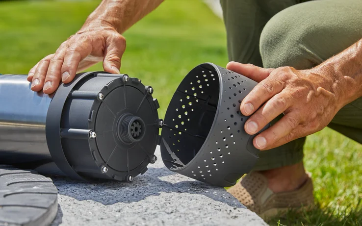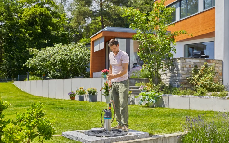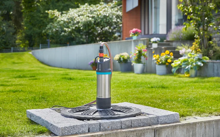 Istnieje możliwość użycia pompy zanurzeniowo-ciśnieniowej 6100/5 z pływającym poborem wody. W ten sposób do pompy nie dostaną się osady z dna studni. Ten rodzaj pompy GARDENA jest wyjątkowo uniwersalnym rozwiązaniem. Zintegrowany, łatwy do oczyszczenia filtr zapobiega blokowaniu i uszkadzaniu pompy oraz urządzeń podłączonych do niej.