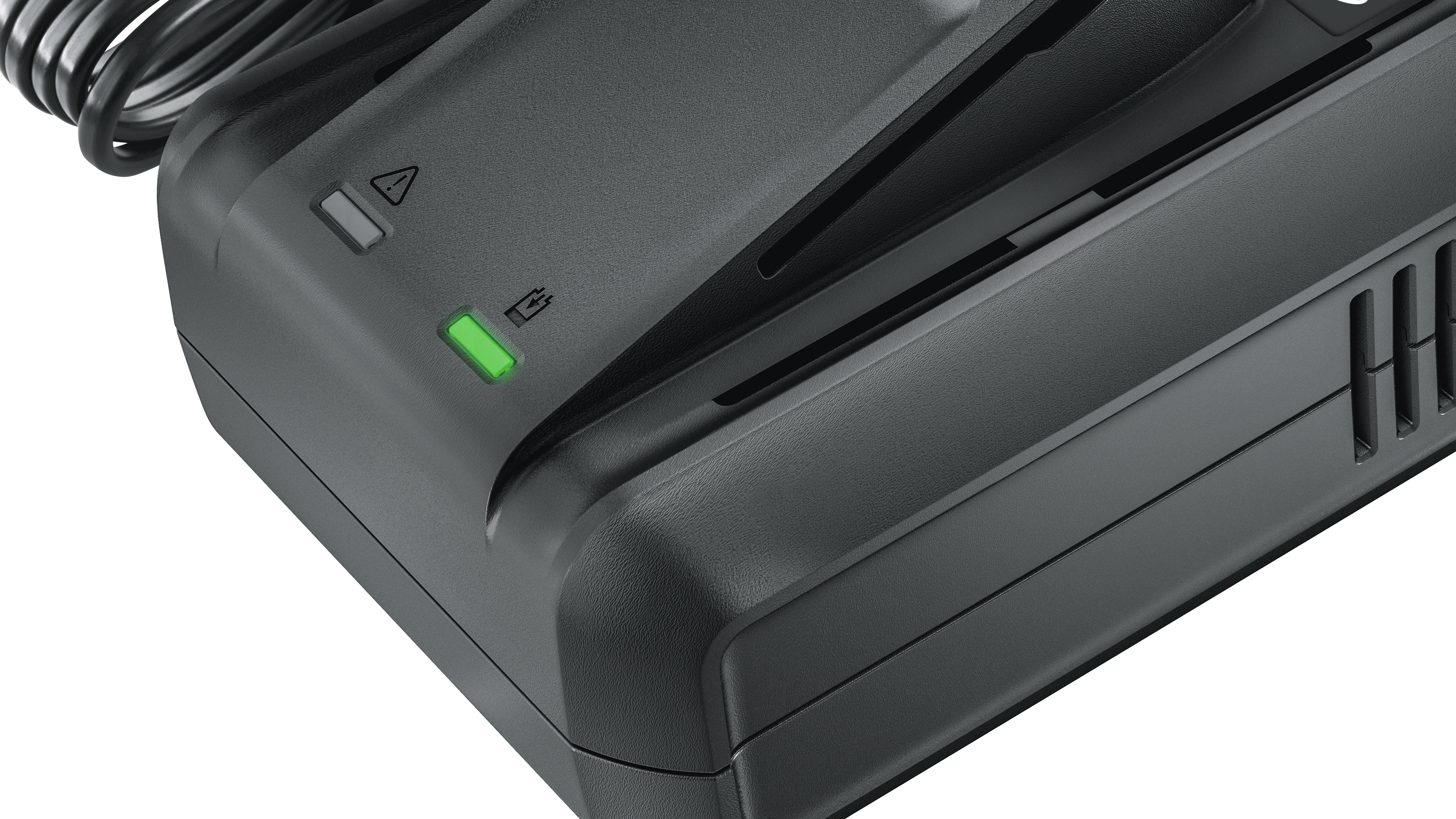 Graças à corrente de carga de 4,4 A, este carregador de alta velocidade atinge uma carga completa para a bateria de 2,5 Ah em apenas 44 minutos. A função 'Pronto para ir' permite que você atinja 80% de carga em apenas 31 minutos.