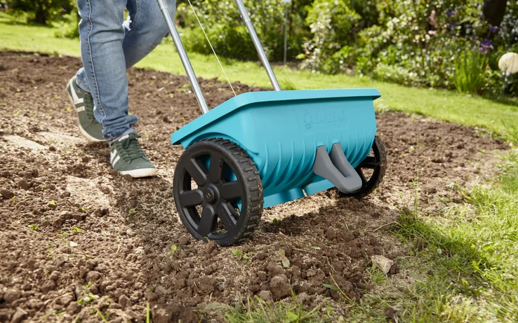 Passion every season! The GARDENA Spreader L will let you experience enthusiasm for your garden throughout the entire year. Use it, for example, to fertilize lawns of up to 400 m² in the growth phase or to spread winter grit in frost and snow. You can regulate the quantity with the ergonomic handle and the practical open/close function allows you to precisely dose the spreading material - in an upright posture without bending down. The special scattering roller helps you to distribute the material evenly so it always gets where it is supposed to go. The patented locking slide with soft plastic lip ensures there is no accidental leakage of spreading material and no leaks after use. When guiding the spreader, you will get good support on any surface thanks to the large-tread wheels with ball bearings that provide a firm grip and the best traction. In addition, the cart is made of materials such as high-quality plastic, a sturdy aluminium bracket and a stainless steel wire rope, which make it resistant to corrosion and breakage. You just need water for cleaning, for example, simply spray it down with the water hose.