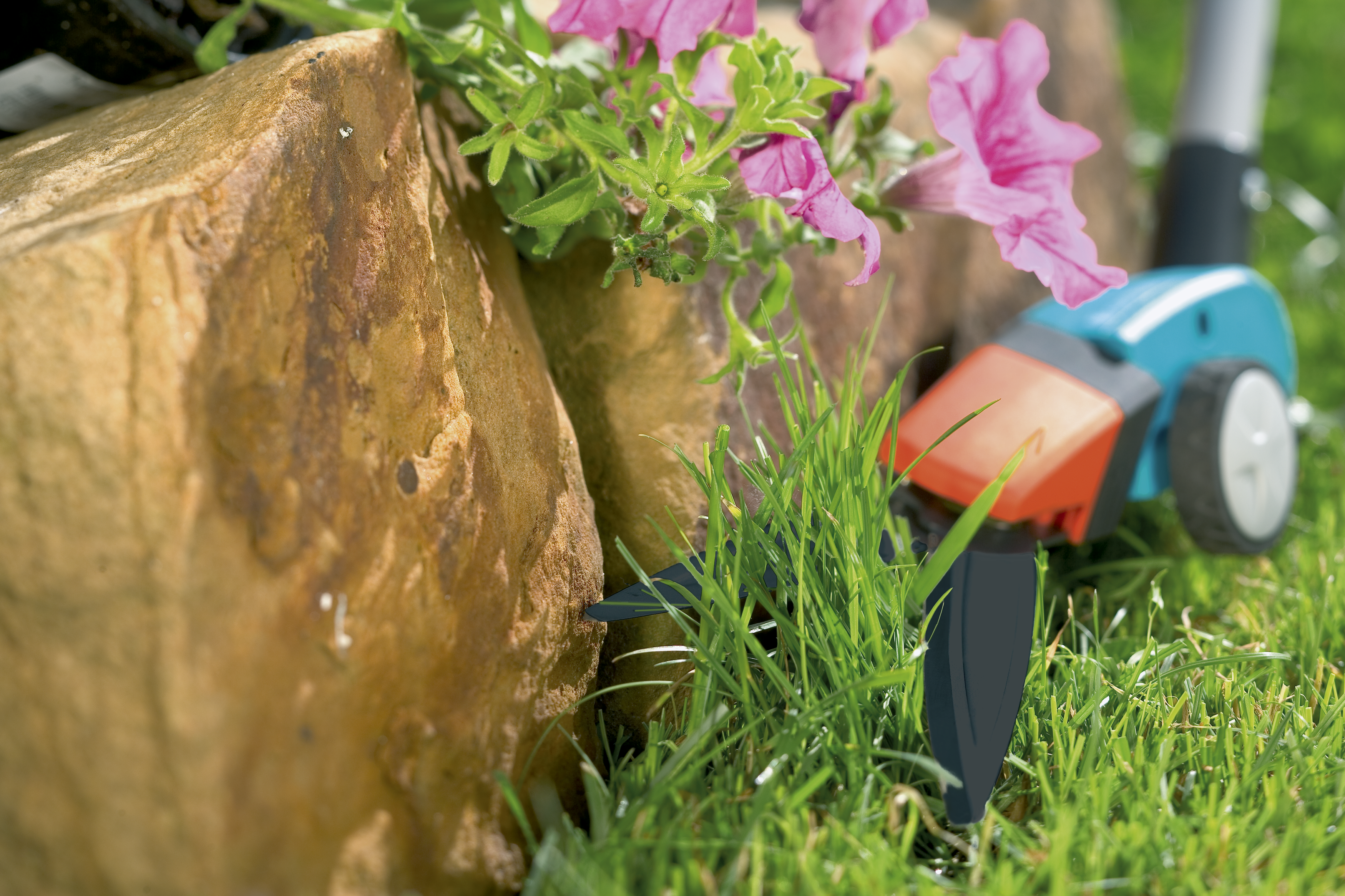 Aparar facilmente os rebordos do relvado - sem se inclinar