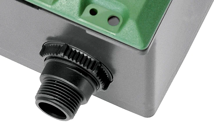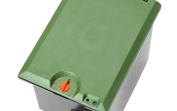 Na caixa para válvula V1 GARDENA, é possível instalar uma válvula para rega de 24 V (art. n.º 1278-20) ou uma válvula para rega de 9 V (art. n.º 1251-20) abaixo do solo. A ligação telescópica com rosca permite uma fácil montagem e remoção da válvula. A tampa pode ser fechada para segurança das crianças. A caixa para válvula V1 GARDENA tem uma rosca macho de 1".