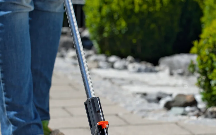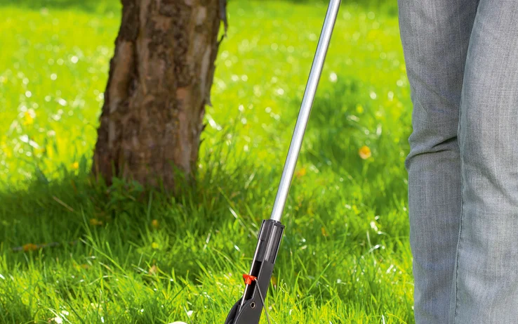 A pinça de jardim GARDENA é uma forma simples de apanhar lixo e resíduos que não faz mal às costas. Permite agarrar de forma simples e confortável, sem ter que se inclinar; pressionando um botão, é possível largar facilmente os resíduos apanhados com o espigão de aço inoxidável. A pinça de jardim tem uma função de pegar e de espetar numa unidade, evitando assim a incómoda troca de peças. A secção de metal no braço superior da pinça de jardim é prática para remover, por exemplo, folhas coladas. Com o punho rotativo e ajustável, a pinça para jardim pode ser utilizada universalmente para todas as situações. Um auxiliar robusto e durável no jardim, adequado para destros e canhotos.
