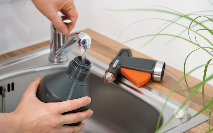 Pompa de stropit GARDENA Premium de 1 l este pulverizator multifuncţional pentru interior şi are o capacitate de 1 litru. Este fabricată numai din materiale moderne de înaltă calitate, fiind dotată cu o duză şi cu un inel din oţel inoxidabil. Containerul de culoare închisă oferă un aspect elegant, toate aceste elemente fac ca pompa de stropit Premium să fie ideală pentru uzul casnic. Prin pulverizarea sa foarte fină, pompa de stropit Premium este ideală pentru pulverizarea atentă a plantelor sensibile. De asemenea, este confortabilă şi uşor de utilizat. Datorită mânerului ergonomic, pompa de stropit Premium se potriveşte perfect în mână. Duza este complet ajustabilă, de la jet puternic la pulverizare fină. În plus, orificiul foarte mare de umplere facilitează umplerea de la robinet. Filtrul de la ţeava de sucţiune este practic şi protejează împotriva înfundării duzei. De asemenea, pompa de stropit are şi un indicator de nivel care poate fi citit cu uşurinţă, fără a se deschide containerul.