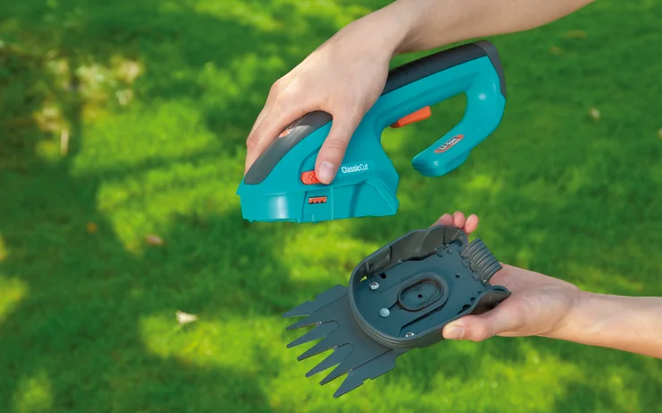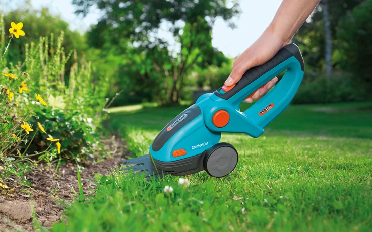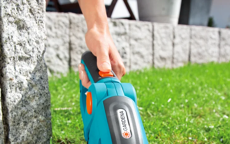 Setul de foarfece pentru iarbă şi pentru arbuşti cu acumulator ComfortCut GARDENA este un dispozitiv absolut pentru întreaga grădină. Dotat cu două lame diferite, foarfecele este ideal pentru tăierea marginilor de gazon, pentru a da o formă şi pentru tunderea arbuştilor buxus şi pentru tăierea tufişurilor şi a arbuştilor. Lamele pot fi schimbate fără unelte; acest lucru se poate face uşor, rapid şi sigur. Foarfecele de iarbă poate fi transformat imediat în foarfece pentru arbuşti. Cu modelul Comfort, GARDENA conferă o valoare specială manevrării plăcute. În funcţie de aplicaţie, mânerul Comfort poate fi înclinat şi reglat optim la poziţia naturală a mâinii. Datorită bateriilor litiu-ion reîncărcabile, de înaltă performanţă şi uşor de întreţinut, este posibilă efectuarea unei lucrări uşoare şi în forţă. Ecranul cu LED pentru nivelul de încărcare a bateriei oferă un control constant al timpului de acţionare rămas şi afişează intervalul de timp după care bateria trebuie reîncărcată. Lamele de calitate, care se pot schimba, sunt ascuţite cu precizie şi acoperite cu un strat neaderent. Foarfecele pentru iarbă şi pentru arbuşti cu acumulator include un încărcător de baterie şi o apărătoare de lamă pentru o depozitare sigură. Pentru tăierea confortabilă a marginilor de gazon fără să vă aplecaţi, se poate adăuga foarfecelui un mâner telescopic.