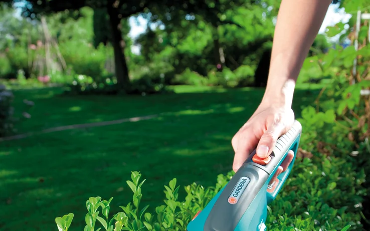 Cu ajutorul Setului GARDENA pentru tăierea marginilor de gazon și a buxușilor d ClassicCut, puteți tăia margini de gazon fără cabluri. Echipat cu două lame diferite (lamă de iarbă și boxus cu o lățime de 8 cm, precum și o lamă de arbust cu o lungime de tăiere de 12,5 cm), Foarfecile Accu sunt de asemenea potrivite pentru modelarea și tăierea lemnului. Lamele pot fi schimbate fără scule; este deosebit de ușor, rapid și sigur. Datorită bateriilor reîncărcabile cu litiu-ion ușor de utilizat, este posibilă o muncă puternică și ușoară. Prin mânerul ergonomic, foarfecele Accu se prind bine în mână și performanța puternică realizează rezultate excelente de tăiere. Foarfecile pentru iarba Accu includ un încărcător pentru baterii și o protecție lamă pentru depozitarea în condiții de siguranță. Pentru tăierea confortabilă a marginilor gazonului fără aplecare, se poate adăuga un mâner telescopic.