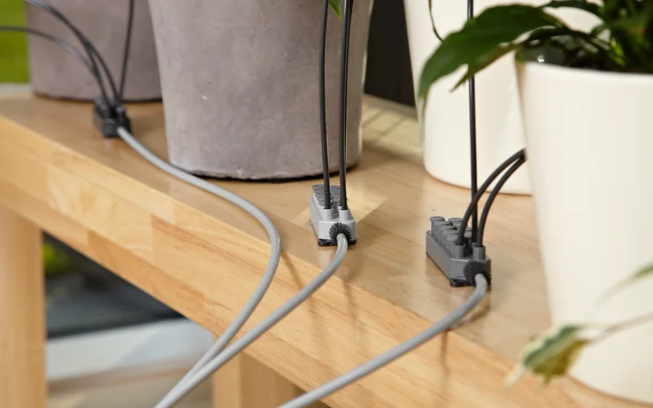 Cu Setul de udat pe durata concediului GARDENA, până la 36 de plante pot fi udate automat. În acest fel, vă puteți aproviziona cu ușurință plantele fără o cană de udare - și veți avea un înlocuitor ideal în absența dumneavoastră. Peste trei distribuitori diferiți, fiecare cu 12 ieșiri, pot fi atribuite diverse cerințe de alimentare cu apă pentru anumite instalații. Transformatorul complet închis de joasă tensiune poate fi utilizat atât în interior, cât și în exterior