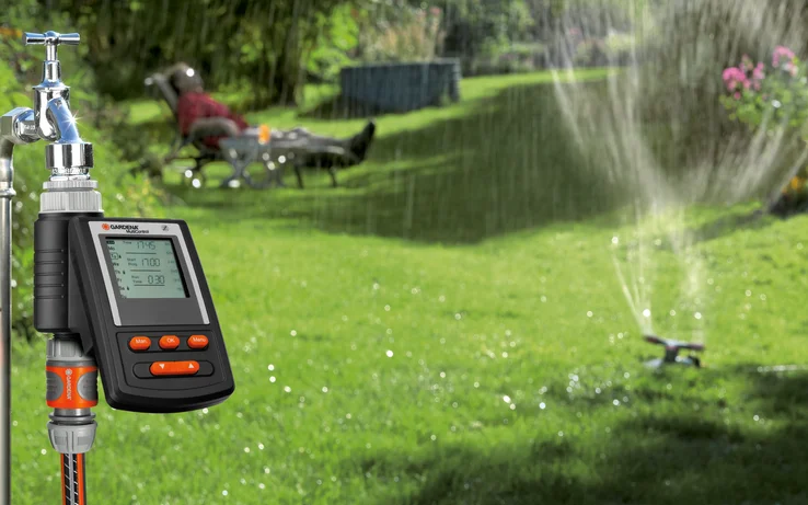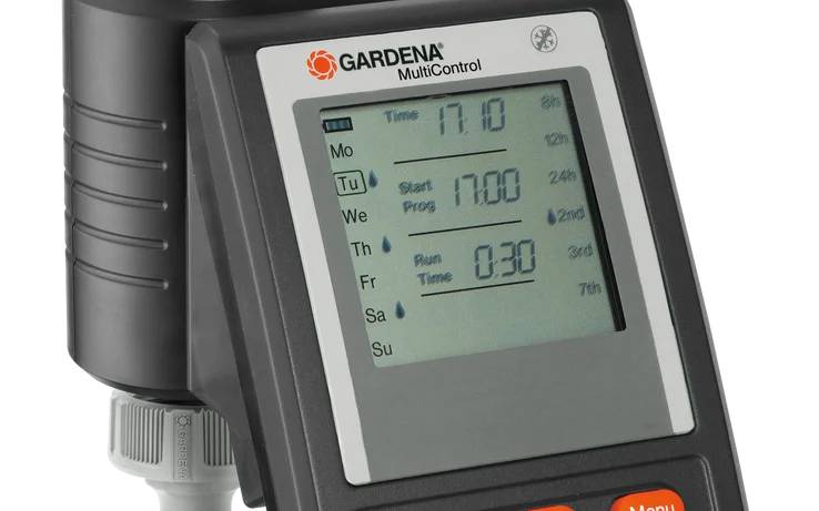 Programatorul udare C 1030 plus GARDENA este ataşat la robinet şi controlează irigarea automată a grădinii dvs., de exemplu aspersoarele, un sistem de microirigare cum este Micro-Drip-System sau sistemul de aspersoare GARDENA Sprinklersystem. Programarea numărului de irigări este uşoară: Unitatea de operare cu afişajul mare şi clar poate fi îndepărtată, pentru o programare mai uşoară. Afişajul explică limpede ordinea în care trebuie realizate etapele programului. Cu ajutorul butonului rotativ mare, uşor de utilizat, data dorită poate fi reglată rapid. Pot fi selectate zilnic până la trei intervale de irigare, cu o durată individuală de la un minut la 7 ore şi 59 de minute. Flexibilitate suplimentară: zilele dorite de irigare se pot selecta după dorinţă. Pentru funcţionare cu economie de apă, poate fi conectat un senzor de ploaie sau un senzor de umiditate a solului GARDENA. De asemenea, este posibilă o irigare controlată exclusiv pe bază de senzor, prin intermediul senzorului de umiditate a solului. Pentru funcţionarea programatorului de apă C 1030 plus GARDENA, este necesară o baterie alcalină de 9 V (nu este inclusă). Acest fapt asigură funcţionarea sigură pentru aproximativ un an.  Afişajul integrat pentru baterie descărcată indică momentul când aceasta trebuie înlocuită.