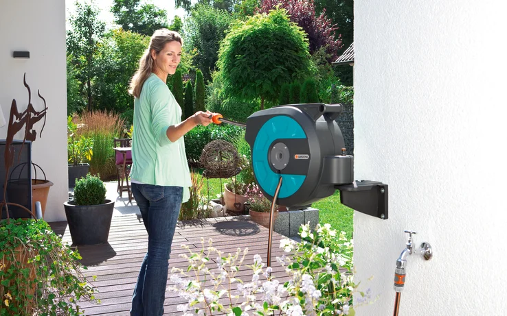Compact și gata de utilizare imediat: Dispozitiv de perete pentru furtun 15 roll-up - pentru grădini mici și terase