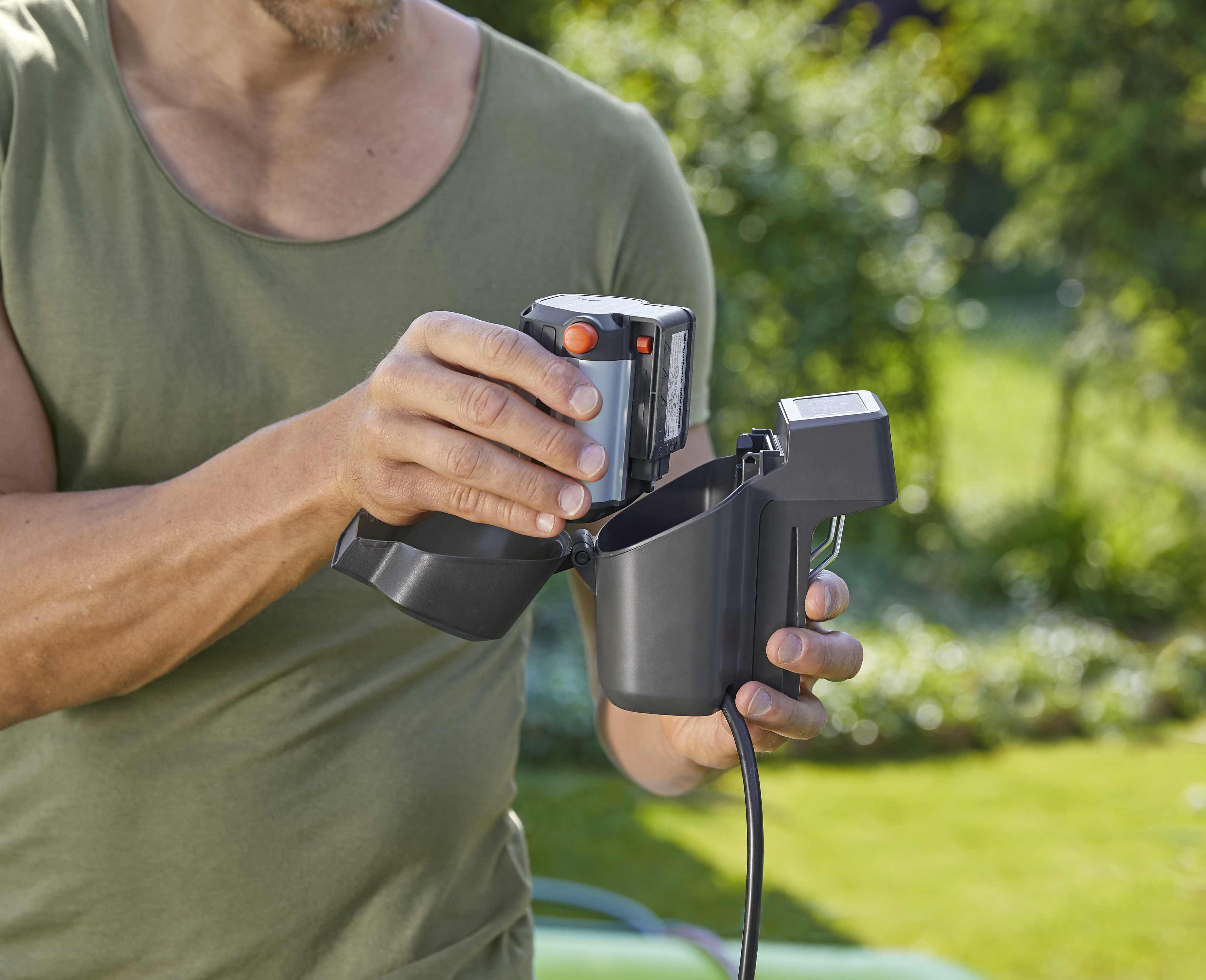 Folosind Setul Pompă pentru apa de ploaie 2000/2 Li-18 GARDENA apa de ploaie poate fi utilizată gratuit din butoi pentru a iriga grădina cu Spritzere, Pistoale de apă sau Sprinklere GARDENA. Indiferent de locația butoiului cu apă de ploaie sau a sursei de alimentare, pompa este fiabilă pentru utilizare datorită bateriei litiu-ion. Pompa este potrivită și pentru drenaj. Setul include acumulator și încărcător. Pompa este alimentată de o baterie GARDENA de 18 ușor de întreținut. Aceasta poate fi reîncărcată oricând fără efect de memorie.