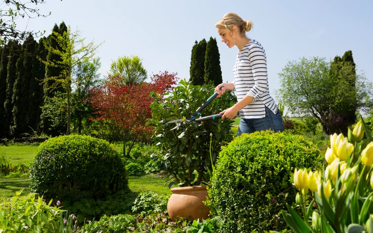 GARDENAs Häcksax EasyCut är en mångsidig häcksax som passar för olika beskärningsarbeten på häckar och buskar. Tack vare de lätta materialvalen är häcksaxen lätt, vilket hjälper dig att orka arbeta längre utan att bli trött. De ergonomiskt designade ErgoTec-handtagen är tillverkade av robust fiberförstärkt plast. När du använder häcksaxen absorberar den mjuka anslagsdämpare stötar och skyddar dina handleder. Stålbladen är särskilt hållbara och har en vinkad slipning. Denna speciella slipning ger bladen en extra hög skäreffektivitet. Kvistar och tunna grenar glider inte bort vid beskärning tack vare den vinkade slipningen som håller grenarna på plats. Arbetskomforten och effektiviteten ökar också med non-stickbeläggningen, vilket minskar friktionen och ger jämna, rena skär. Om du vill beskära tjockare grenar kommer den integrerade grenavskäraren att vara till stor hjälp. GARDENA erbjuder 25 års tillverkargaranti på denna produkt. Lättanvända, effektiva och hållbara skärverktyg för kreativa trädgårdsmästare.