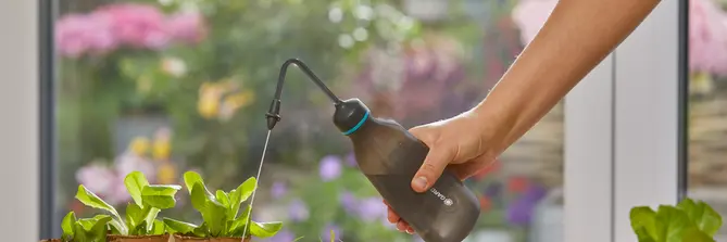 Förse dina växter och blommor med vatten med pumpsprutorna från GARDENA. Sprutan är nära till hands och kan användas inomhus, på balkong eller i trädgården.