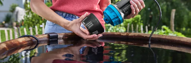 För enkel användning av regnvatten från tunnor, med automatisk på/av-funktion.