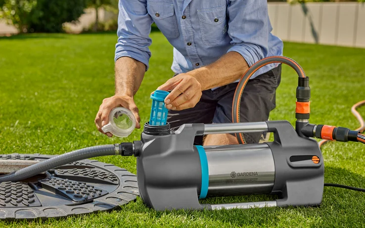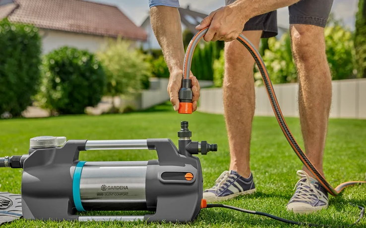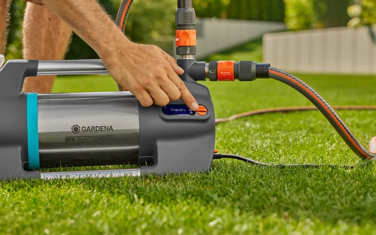 GARDENA Vrtna črpalka 6500 SilentComfort je močna črpalka s prvovrstno zmogljivostjo. Predstavljamo črpalko z neverjetno nizko stopnjo hrupa in funkcijo Bluetooth, ki zagotavlja večjo moč. Odlikuje jo impresivna energetska učinkovitost in posebej nizka raven hrupa. S porabo energije 1300 W doseže impresiven pretok 6500 litrov na uro pri 60 metrih višine (6 barov) s pomočjo učinkovite hidravlike. Uporabite jo za črpanje deževnice iz vodnjaka ali cisterne iz globine do osem metrov. Zahvaljujoč inovativni, vodno hlajeni večstopenjski tehnologiji, izdelana v Nemčiji, je izjemno tiha pri samo XX dB(A) zvočnem tlaku na razdalji 5 m. Ventilator ni potreben, saj se odvečna toplota odvaja z vodo. To se pozna pri najvišji učinkovitosti in nizkem hrupu. Osvetljen LCD zaslon na napravi ponuja nastavitev pomembnih funkcij, razen ustvarjanja namakalnega urnika. Praktična Bluetooth povezava omogoča uporabo pametnega telefona ali tablice, upravljanje črpalke z razdalje do 10 metrov in pridobitev dodatnih funkcij. Določite urnike namakanja ko niste doma, nastavite časovnik, spremljajte trenutni dovod tlaka ali prilagodite tlak za vklop in izklop svojim individualnim potrebam. Možnost priključitve GARDENA senzorja vlažnosti tal (art. št. 1867-20) omogoča optimalno oskrbo vaših rastlin z vodo in preprečuje izgubo vode. SilentComfort je primerna za uporabo na prostem, tako da jo lahko pustite zunaj celo sezono. To pomaga zagotoviti kratke in učinkovite razdalje do vodnega vira. Robustne gumijaste noge zagotavljajo stabilnost črpalke na tleh. Zaščita pred suhim tekom z zaščito pred pregrevanjem vode in motorja ter integriran predfilter, ki preprečuje delcem umazanije kot je pesek vstop v črpalko, zagotavljajo dolgo življenjsko dobo. Visokokakovostni materiali kot so ohišje in motor iz nerjavnega jekla ter aluminijasti ročaji, poskrbijo za trajnost črpalke. Uporaba zalogovnika vode kot je vodnjak, sod za deževnico ali cisterna omogočajo prihranek dragocene sveže vode. Dobro za vašo denarnico in okolje, zlasti v suhih poletnih dneh. Vzdržljiva enota je izdelana iz visokokakovostnih materialov, kot je nerjavno jeklo za pogonsko gred, priključke ter ohišje motorja in vode. Enega od dveh izhodov je mogoče obrniti za 180°. Velika odprtina za polnjenje in izpustni ventil omogočata še posebej enostavno polnjenje enote tlačne posode in jo zaščitita pred zmrzaljo. Z možnostjo neposrednega zagona lahko vrtno črpalko vključite v GARDENA smart system s smart Vtičnico (art. št. 19095/19096-20), ki je na voljo ločeno. GARDENA izdaja 5 letno garancijo proizvajalca pri opravljeni spletni registraciji izdelka. Več kot 40 let strokovnega znanja in izkušenj pri domači uporabi, namakanju in drenaži.