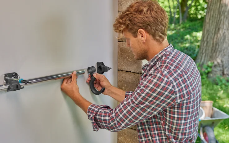 S GARDENA držiakom a hákom v jednej súprave môžete ľahko a flexibilne rozšíriť vešiak na vaše ťažké záhradné náradie. Súprava obsahuje držiak a univerzálny háčik. Držiak môžete použiť na uskladnenie ťažkého záhradného náradia ako je napr. rýľ a vidly s hmotnosťou až 10 kg. Pre väčšiu flexibilitu je možné držiak použiť aj s výrobkami combisystem a Original GARDENA System. Univerzálny hák s maximálnou nostnosťou 5 kg ponúka ďalšie uloženie nožníc na živý plot alebo fúkačov lístia so širokou rukoväťou. Vďaka uzamykateľnému nástennému držiaku môžete hliníkovú tyč zasunúť a vešiak na náradie rozšíriť o ďalšie držiaky a háčiky, aby ste mohli uskladniť viac náradia. V kombinácii s vešiakom na náradie Plus (č. v. 3509-20) rozšíri držiak a hák efektívne váš úložný systém. Kvalitný produkt je podporovaný zárukou výrobcu GARDENA v trvaní 25 rokov po registrácii na adrese gardena.com/registration do 3 mesiacov od zakúpenia.