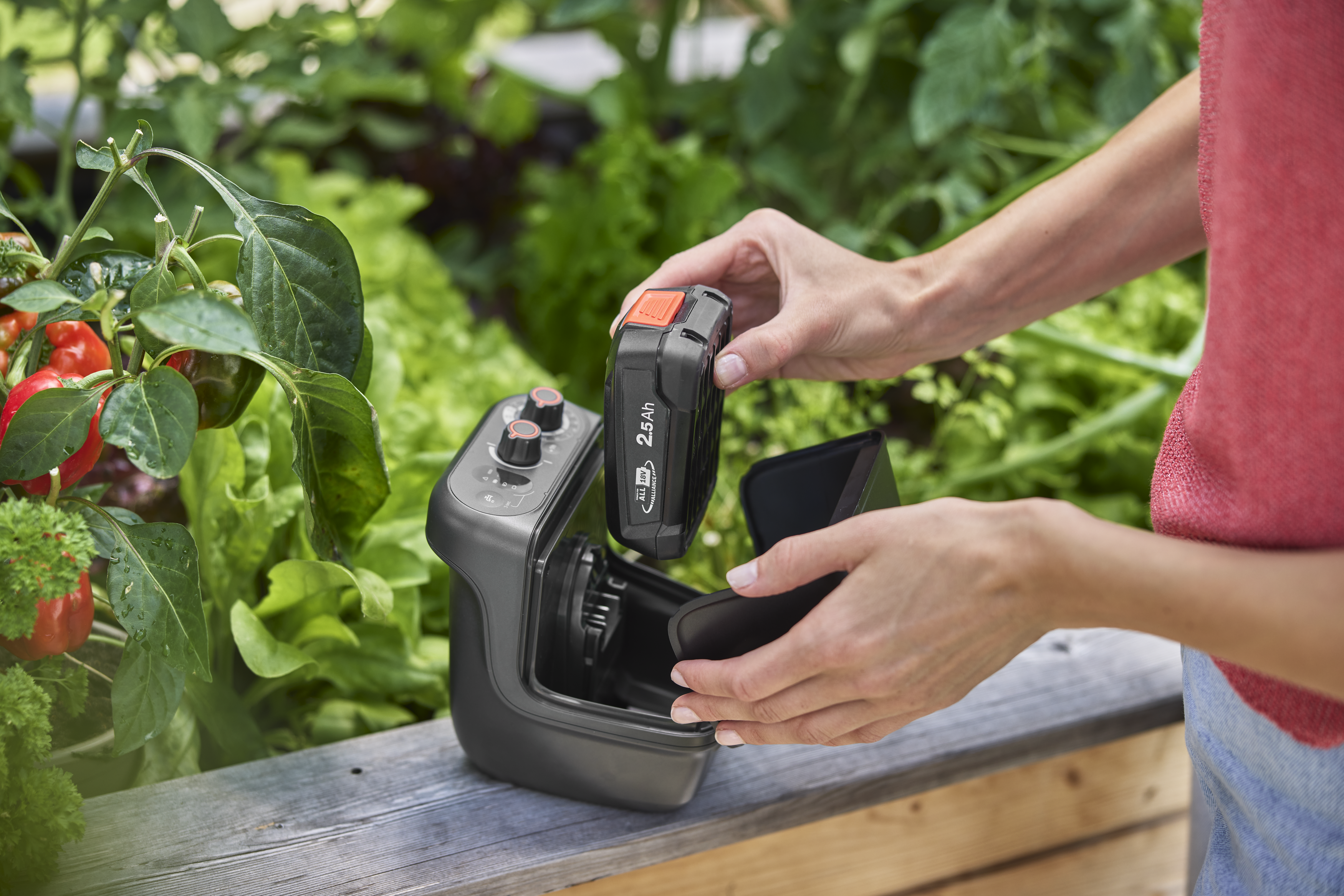 Plynulá regulácia výkonu umožňuje regulovať maximálny prietok 2 600 l/h. Nájdite rovnováhu medzi výkonom a dobou prevádzky a môžete nastaviť úrovne tlaku, ktoré vyhovujú vašej záhrade. Výdrž akumulátora je 27 a 75 minút pri 2,5 Ah a 44 – 120 minút pri 4,0 Ah.