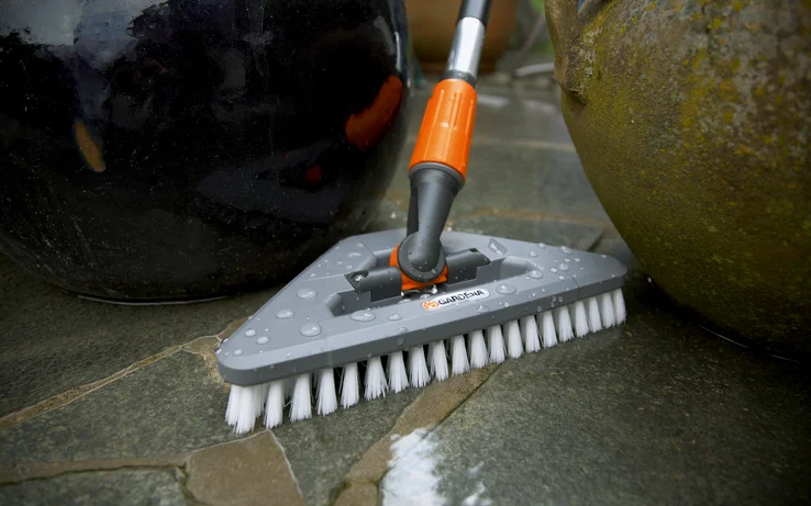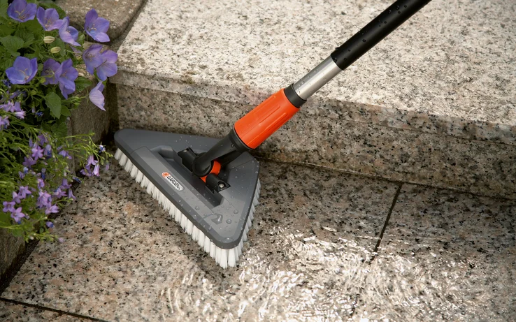 GARDENA Ovma Fırçası, Original GARDENA System ile suya bağlanabilir. GARDENA Dirsekli Ovma Fırçası erişilemeyen alanlar için pratik, üçgen bir şekle sahiptir. Bu fırçayla dar yerleri ve köşeleri veya diğer fırçalarla veya ovma fırçalarıyla erişilemeyen açıları kolayca temizleyebilirsiniz. Döner eklem işinizi kolaylaştırır. 360° döndürülebilir. Dirsekli Ovma Fırçası gereken her yerde kolayca kullanmak için istendiği gibi ayarlanabilir. Tüm Original GARDENA Cleansystem Akan Sus Sapları (Ürün No. 5552-20, 5550-20, 5554-20) ile kullanılabilir. Güçlü kıllarıyla veranda, merdiven gibi güçlü zeminlerin temizlenmesi için mükemmeldir. Temizlik ancak bu kadar kolay olabilir.