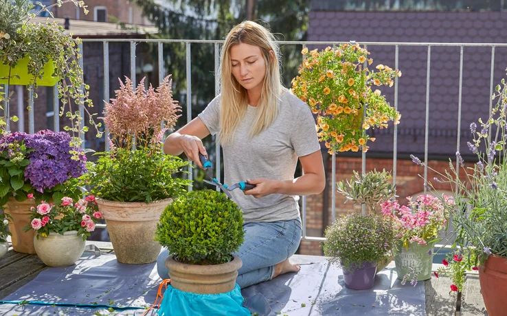Використання килимка GARDENA полегшує процес прибирання сміття після фігурного підстригання вічнозелених та інших типів рослин. Килимок дуже легко розкладається навколо стовбура або горщика з рослиною. Він захищає поверхню під ним, а зрізані гілочки та листя можна потім легко збирати під час прибирання. Килимок, призначений для використання під час фігурного підстригання дерев і кущів, виготовлено з водовідштовхувальної тканини, яка легко очищується. Після використання килимок можна скласти, щоби заощадити місце для його зберігання.