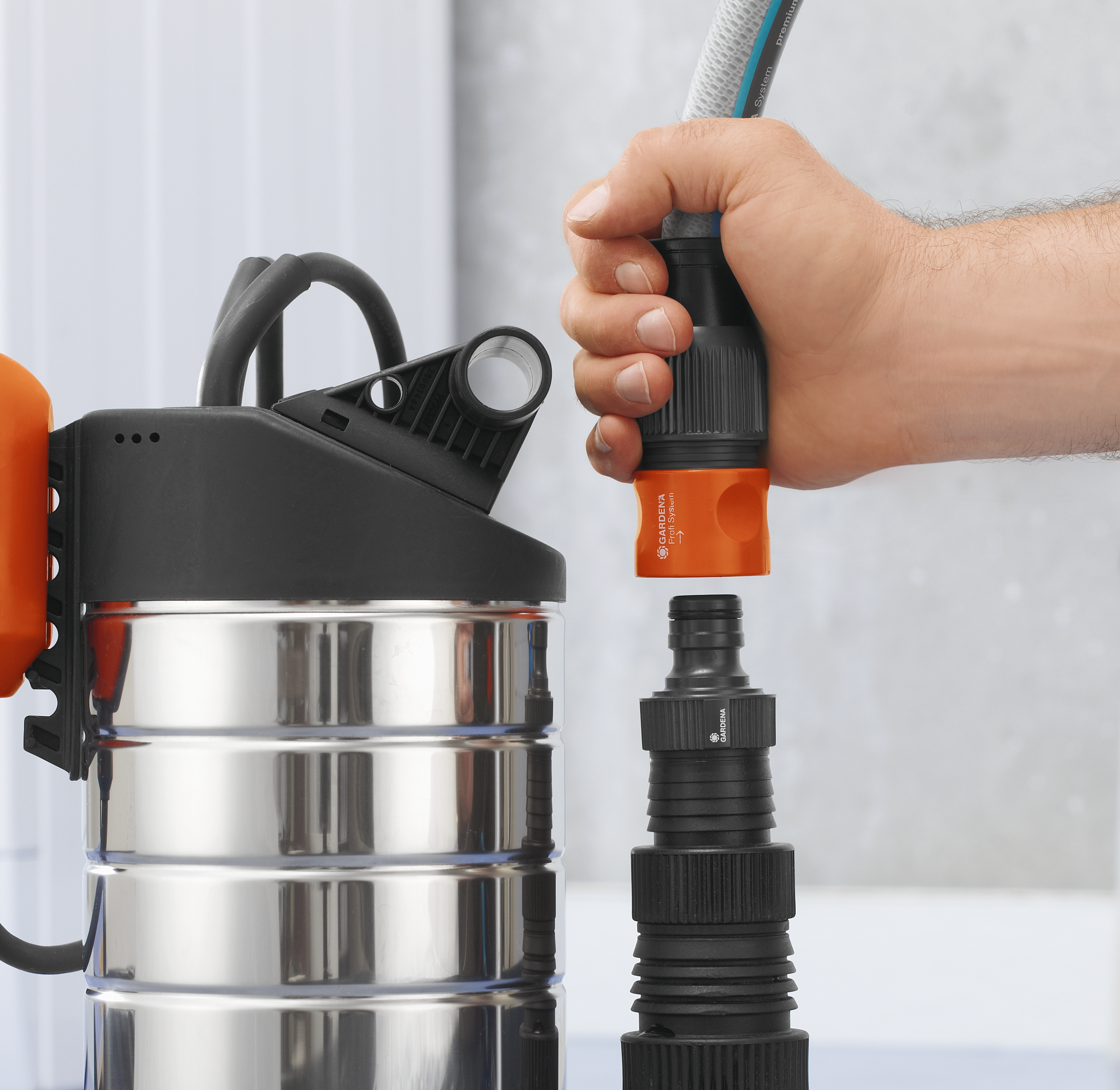 Коли вода протікає там, де це не було передбачено, Вам потрібно швидко діяти, щоб запобігти великим пошкодженням будинку. Дренажний насос для брудної води GARDENA 21000 inox - це насос, який Вам потрібен, щоб швидко та потужно перекачати велику кількість води. Можна перекачати до 20 000 літрів на годину навіть дуже забрудненої води з частинками до 38 мм. Плаваючий вимикач забезпечує автоматичне вмикання та вимикання. Рівень ввімкнення та вимкнення за допомогою поплавкового перемикача точно регулюється шляхом зміни положення кабелю на фіксаторі. Пристрій, який знімається, для зручного перемикання в ручний режим. 10-метровий кабель живлення полегшує універсальне використання - навіть на великій глибині. Найвищий попит на преміум-модель забезпечується за допомогою матеріалів найвищої якості. Наприклад, корпус насоса з нержавіючої сталі робить його дуже міцним та з тривалим терміном служби. Надійна робота насоса гарантується: робочим колесом з низьким рівнем шуму, конденсаторним двигуном, який не потребує обслуговування та має захист від перегріву. Наявність універсального роз'єму дозволяє підключати до насоса шланг діаметром 13 мм (1/2 дюйма), 16 мм (5/8 дюйма), 19 мм (3/4 дюйма), 25 мм (1 дюйм), 38 мм (1 ½ дюйми) і 50 мм (2 дюйма)