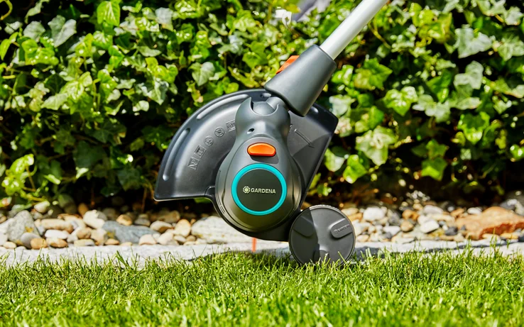 The Guide Wheel for lawn trimmers is a useful accessory that can be used with the ComfortCut and PowerCut, as well as the battery version ComfortCut. Among other great functions, all devices share the useful Edging function. This allows for vertical cutting - that way, edges of paths or a terrace can be precisely trimmed. Here the Guide Wheel has its time to shine. Just remove the plant guard and attach the wheelset to the trimmer. Once mounted, you can guide your trimmer smoothly across the ground with the wheels. This way, you don't have to hold the device at the right height the entire time in order to cut a overhanging edge of your lawn. Especially when working for a long time, the Guide Wheel reduces the strain on your hands and arms significantly.