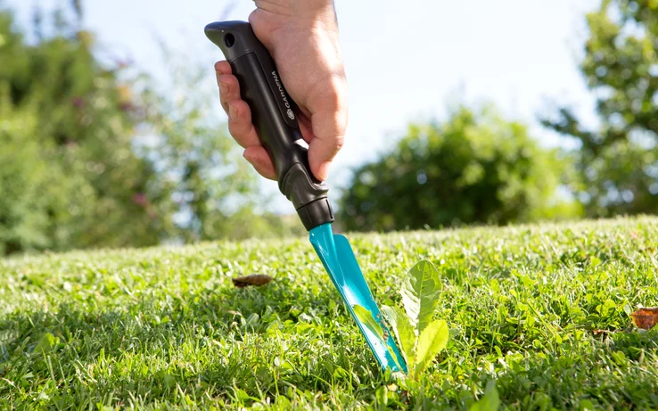 The GARDENA Weeding Trowel makes it easy to remove weeds and their roots from the soil. The ergonomically formed handle, with integrated soft padding, fits perfectly in the hand and is angled at the end. The Weeding Trowel is produced from high-quality steel. The Duroplast coating ensures a long product lifetime. GARDENA provides a 25-year warranty for this product.