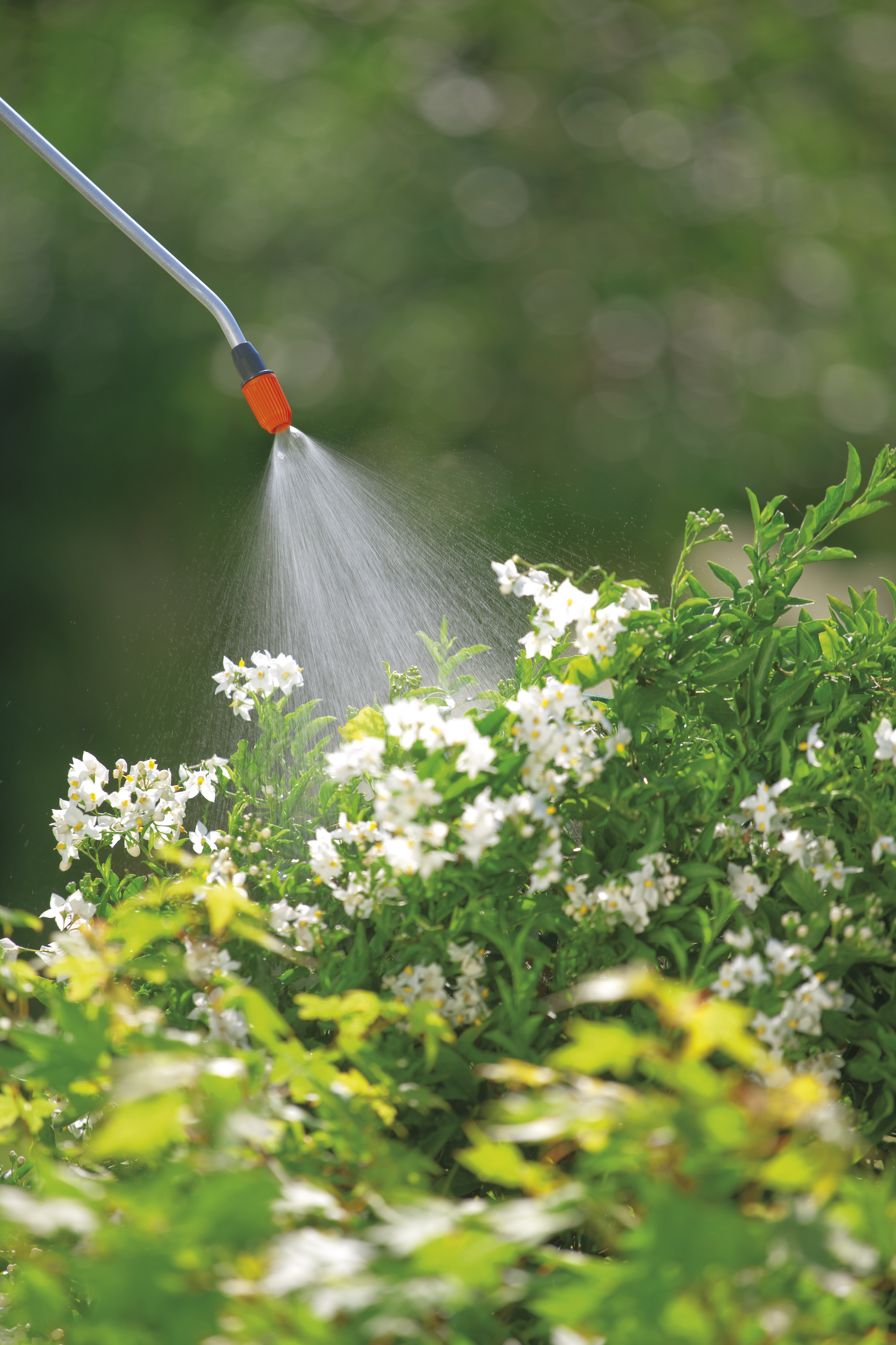 The GARDENA Classic Pressure Sprayer has a filling capacity of 5 litres and is ideally suited for distributing fertiliser and pesticides. It is designed for up to max. 3 bar and is equipped with a safety valve that quickly reduces pressure when required for safety. The level indicator shows the filling quantity without the need to open the container. Moulded feet allow easy pumping and guarantee stable standing on uneven surfaces. Also clever is the angled spray nozzle which is especially suitable for spraying the underside of leaves and which is fully adjustable from hard jet to fine mist. The shoulder strap with padding guarantees pleasant handling and comfortable carrying: the ergonomic D-handle facilitates pumping. The trigger with on and off lock is practical, and with the additional flat spray nozzle, the Classic Pressure Sprayer can be efficiently used for treating areas especially in the kitchen garden.