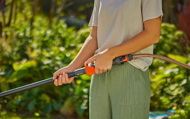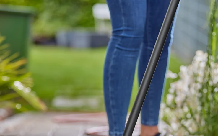 The GARDENA Handle M extends the cleaning radius by a length of 150 cm. The handle makes it particularly easy to clean floors in an upright position and without bending down, to reduce strain on the back. To make the work as comfortable as possible, the handle is made of high-quality, sturdy aluminium and is coated to ensure that it doesn’t feel cold to the touch, even when it’s cold outside.