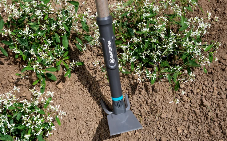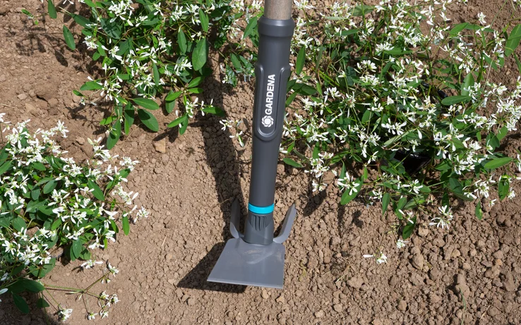 Die GARDENA NatureLine Garden Hoe with its working width of 7.5 cm is optimally suited for gentle garden care in closely-planted cultivated crops and plant beds. A straight blade on one side and two tines on the other side diverse uses of the Garden Hoe such as hoeing, weeding, ventilating, drill hoeing or levelling off the soil. The varnished beechwood handle forms a fixed and sturdy connection with the Weed Hoe – no wobbling, no warping. The FSC® 100%-certified wood comes exclusively from well-managed forestry. The warranty period totals 10 years.